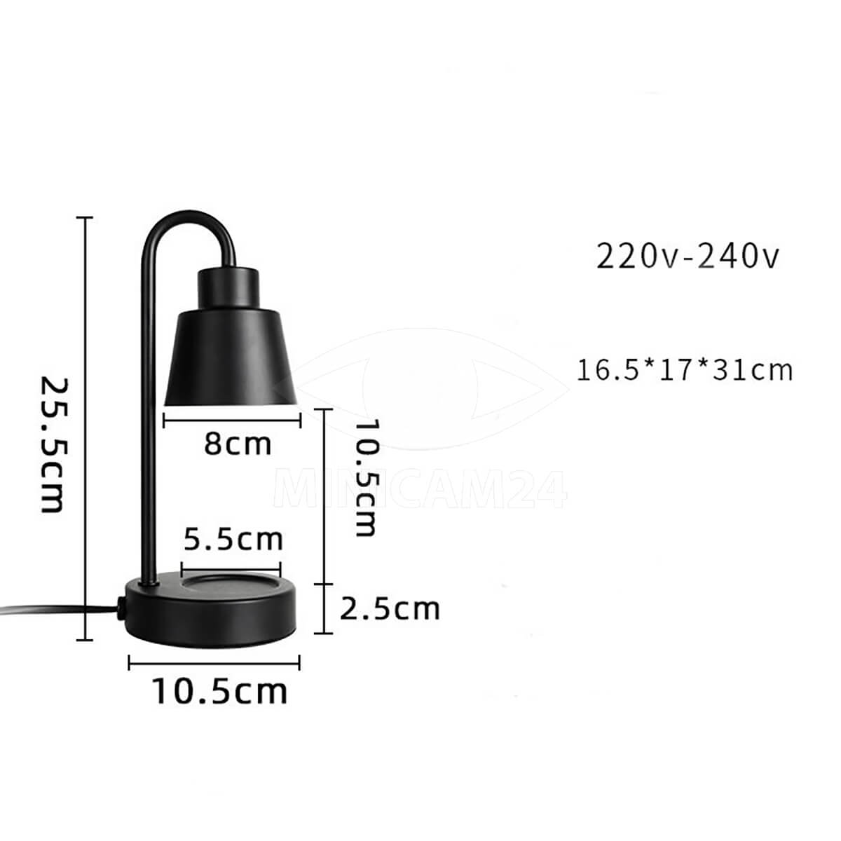 Изготовленная из прочного металла, аромалампа обладает фиксированной высотой и оснащена переключателем яркости и регулировкой температуры, что позволяет легко настроить нужный уровень освещения и тепла. Работает при напряжении 220-240В, а длина кабеля в 150 см.